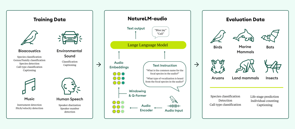 NatureLM-audio is the world’s first large audio-language model for animal sounds. Trained on a vast and diverse dataset spanning human speech, music, and bioacoustics, it brings powerful AI capabilities to the study of animal communication.
