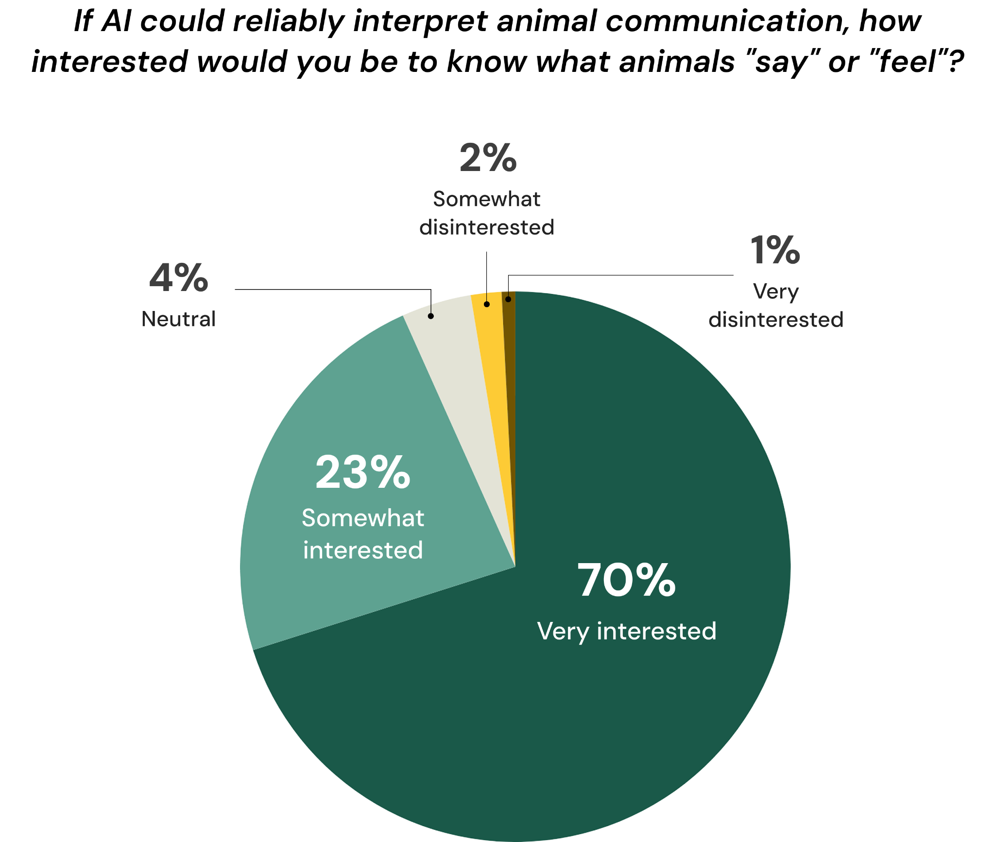 This concern translates into a desire for strong regulation. 85% of respondents believe companies that profit from animals should face strict rules about how they use technology for interspecies communication.